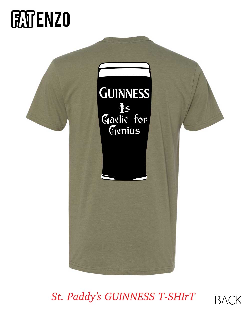 Celebrate St. Patrickโ€™s Day the FAT ENZO way with a bold pint-glass parody tee that blends Celtic swagger, bar-room humor, and classic streetwear attitude. Perfect for stout drinkers, pub crawlers, and anyone who believes Guinness really is Gaelic for genius. ๐Ÿบโ˜˜๏ธ