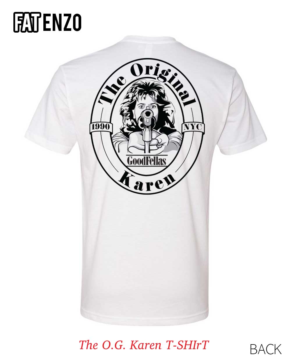 Back: “The Original Karen” circular graphic featuring Karen Hill with pistol — NYC 1990 GoodFellas tribute